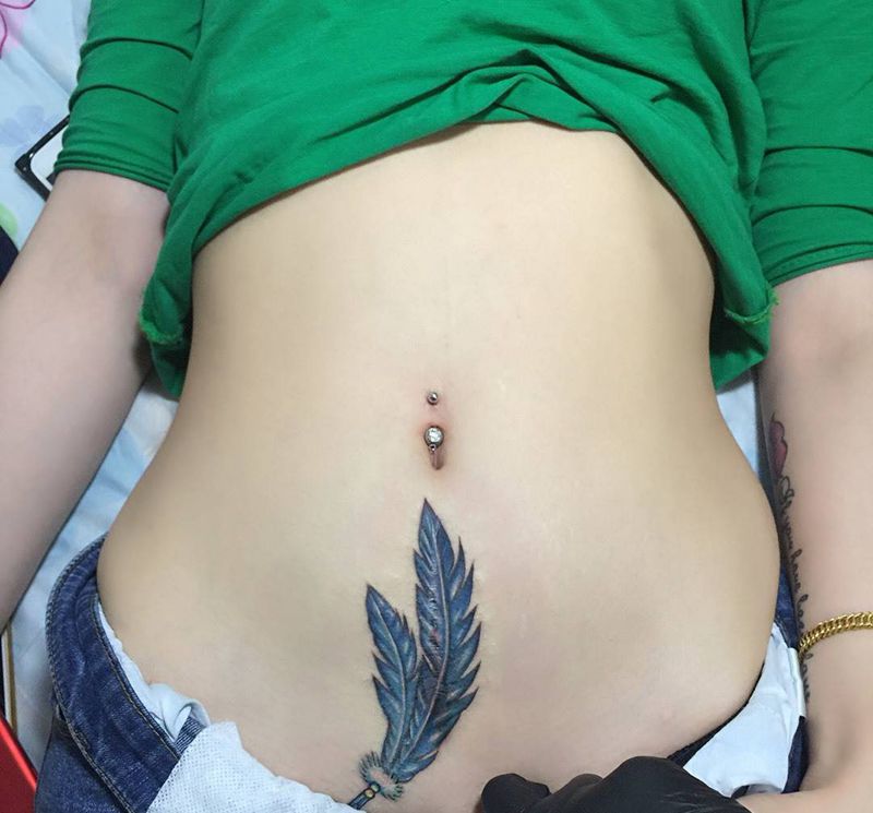 • T关于私处得爱!纹身图片_成品腹部清新字符图腾纹身图案