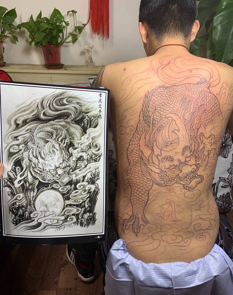 当前位置: 首页 >河北省保定市纹身店-王山刺青徐水店纹身图案>满背麒麟线条纹身图片_背部新传统纹身图案