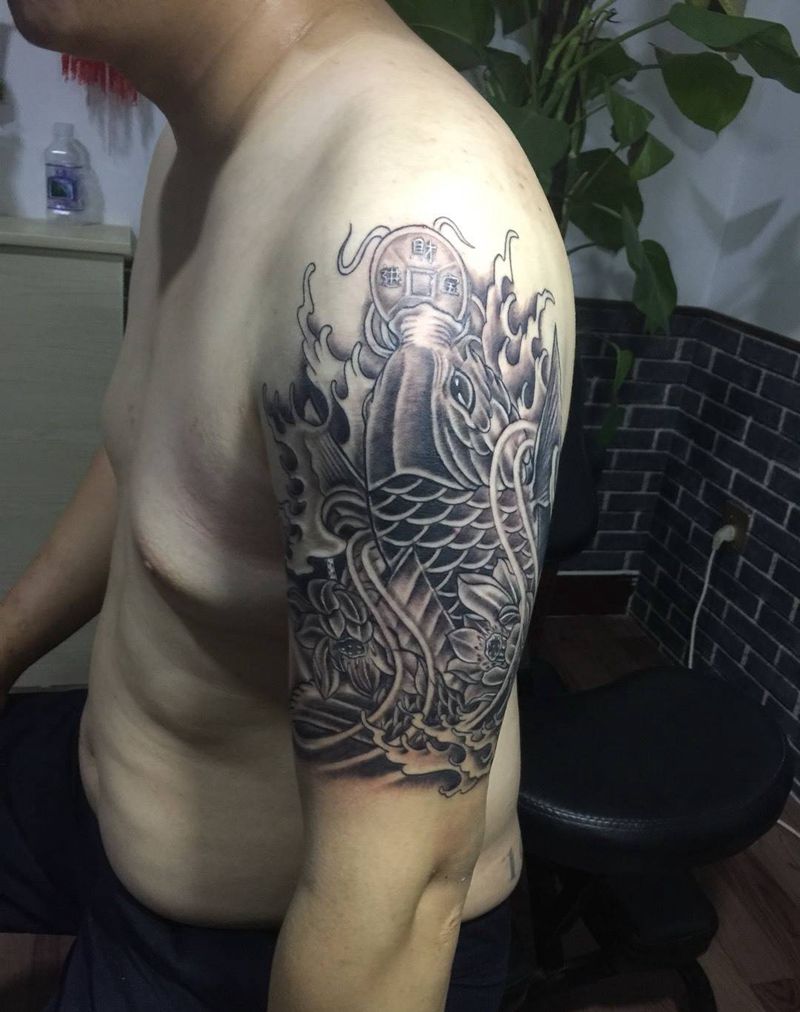当前位置: 首页 >河北省保定市纹身店-王山刺青徐水店纹身图案>大臂鲤鱼纹身图片