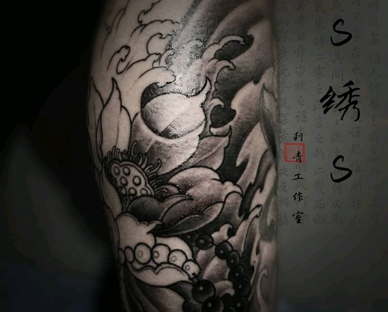 一组15张莲花纹身手