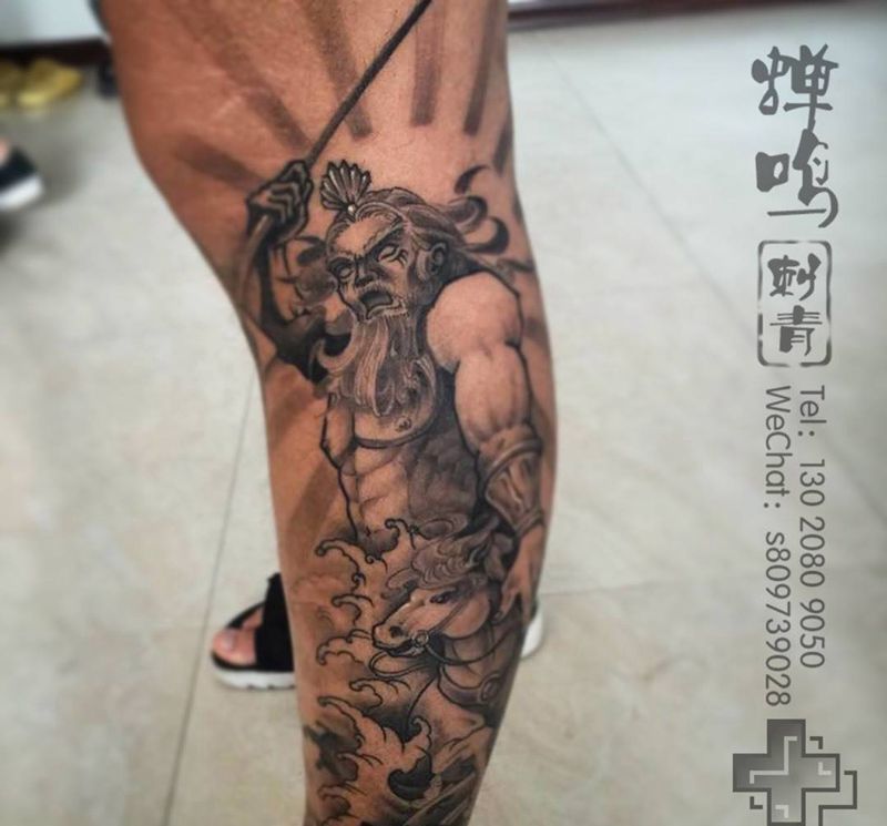 当前位置: 首页 >河北省保定市纹身店-蝉鸣刺青工作室纹身图案>海神波赛冬纹身图片_成品腿部欧美肖像写实动物人物原创纹身图案