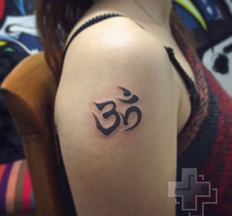 当前位置: 首页 >河北省保定市纹身店-蝉鸣刺青工作室纹身图案>梵文纹身图片_成品肩部传统字符纹身图案