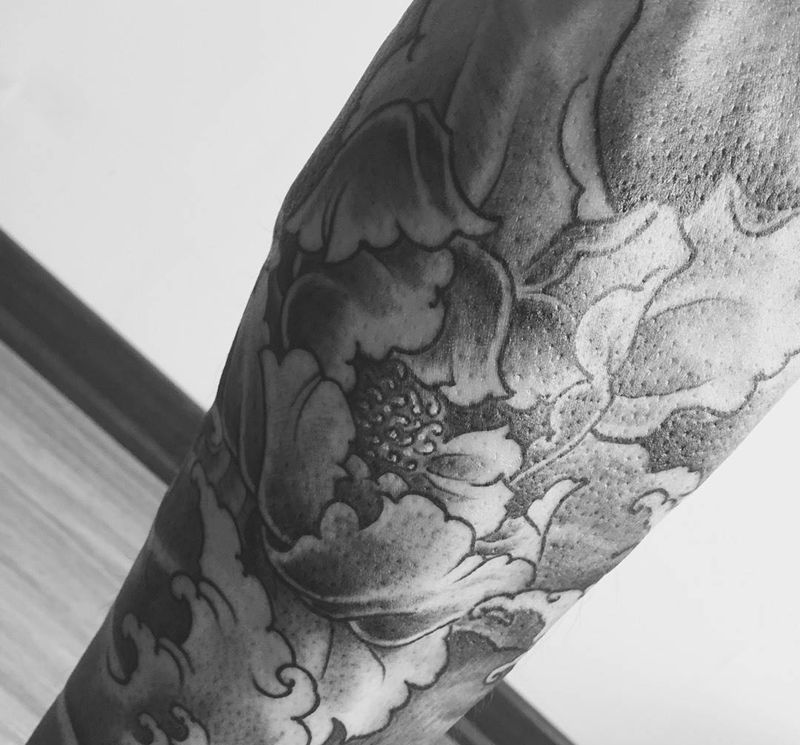 当前位置: 首页 >河北省保定市纹身店-蝉鸣刺青工作室纹身图案>牡丹纹身图片_成品腿部传统植物原创纹身图案
