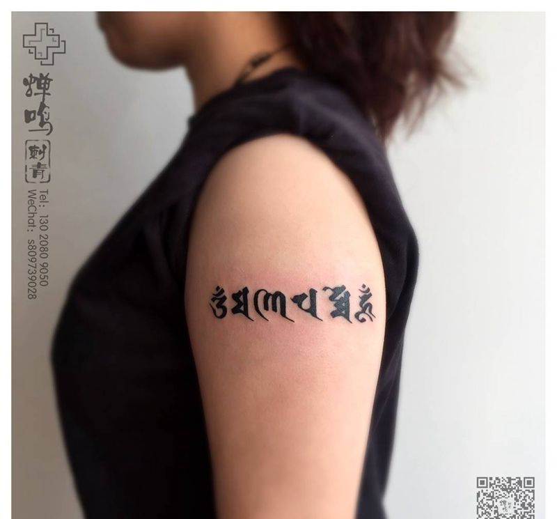 当前位置: 首页 >河北省保定市纹身店-蝉鸣刺青工作室纹身图案>六字真言纹身图片_成品手臂清新字符图腾宗教纹身图案