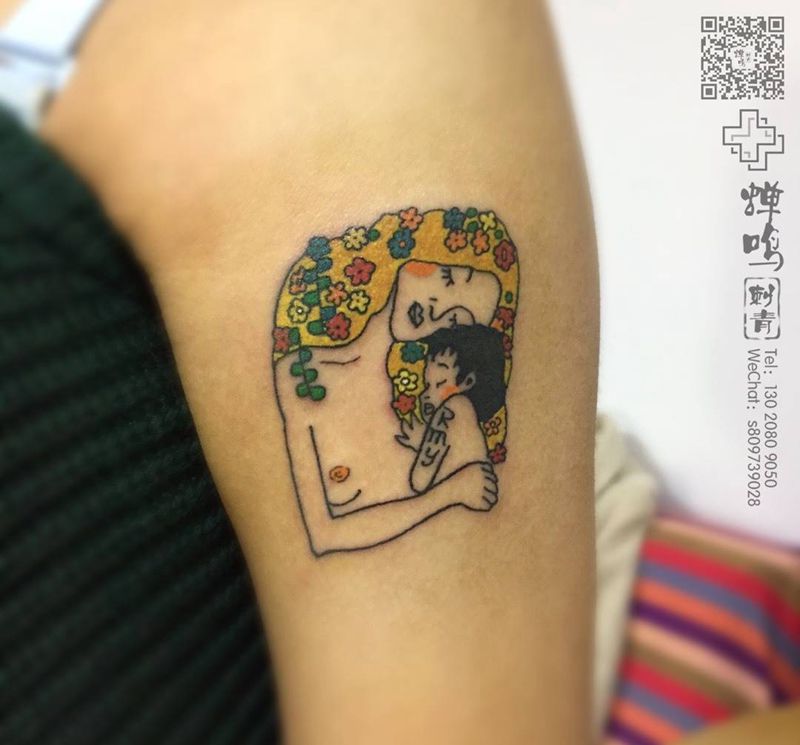 当前位置: 首页 >河北省保定市纹身店-蝉鸣刺青工作室纹身图案>母与子纹身图片_成品手臂清新人物纹身图案