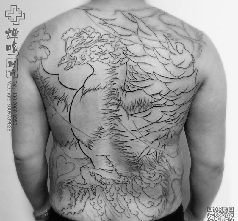 当前位置: 首页 >河北省保定市纹身店-蝉鸣刺青工作室纹身图案>凤凰纹身图片_成品背部传统动物鬼神原创纹身图案