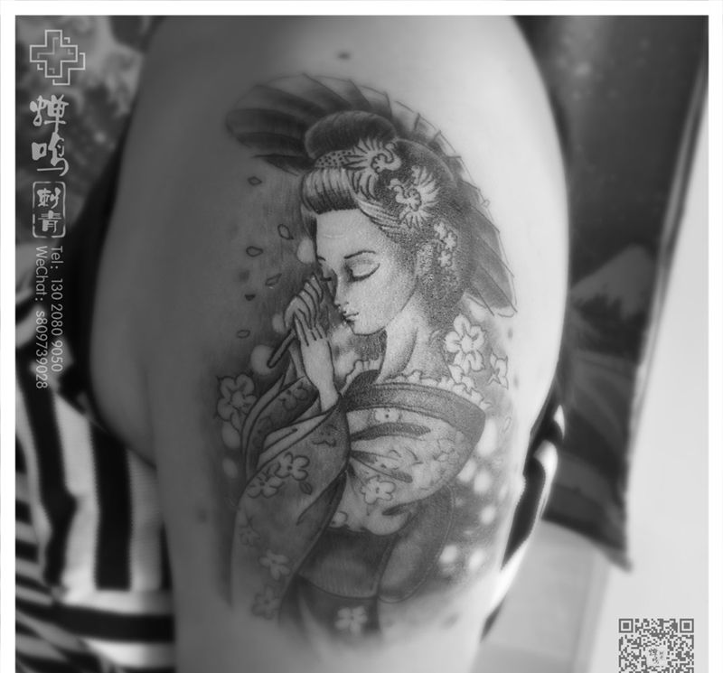 当前位置: 首页 >河北省保定市纹身店-蝉鸣刺青工作室纹身图案>艺妓纹身图片_成品手臂清新欧美人物植物纹身图案