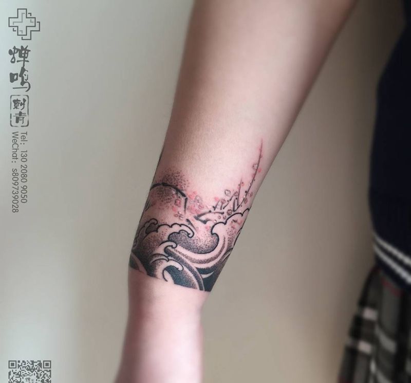 当前位置: 首页 >河北省保定市纹身店-蝉鸣刺青工作室纹身图案>海浪梅花2.0纹身图片_成品手臂传统清新植物原创纹身图案
