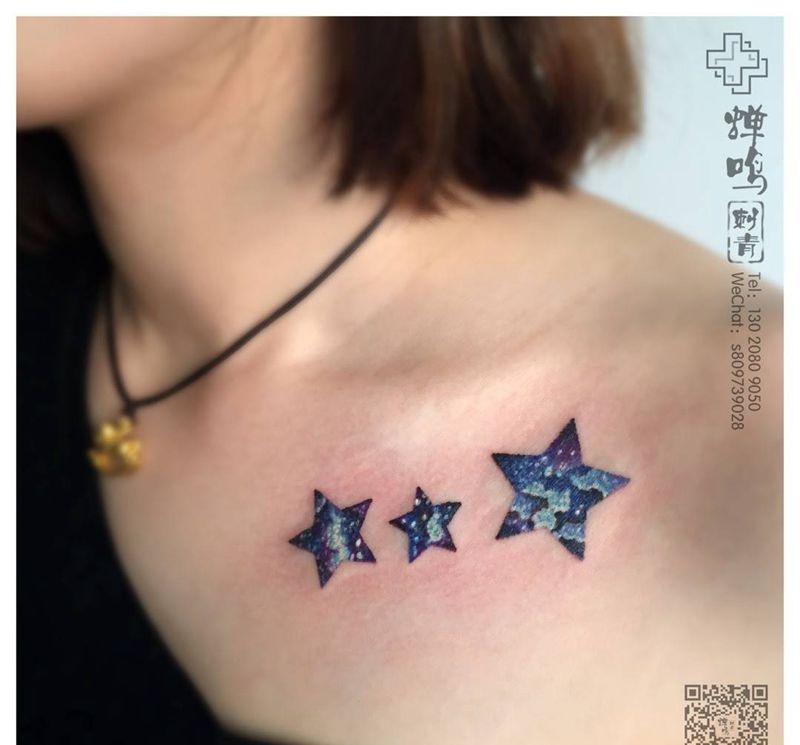 星空五角星纹身图片_成品胸部欧美清新原创纹身图案