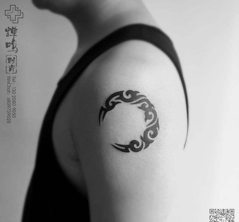 月亮纹身图片_成品肩部清新静物图腾纹身图案