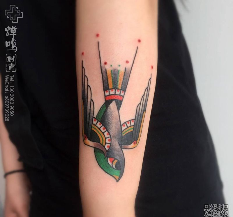 当前位置: 首页 >河北省保定市纹身店-蝉鸣刺青工作室纹身图案>燕子纹身图片_成品手臂欧美清新动物纹身图案