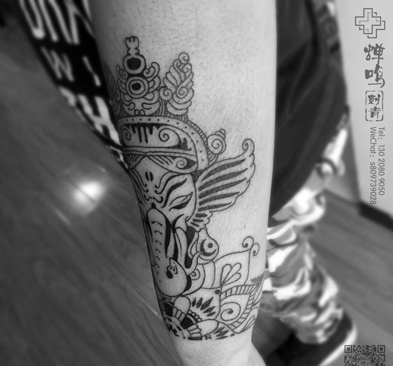 < 上一篇: 下一篇:小象神纹身图片_成品腿部传统清新鬼神纹身图案 >