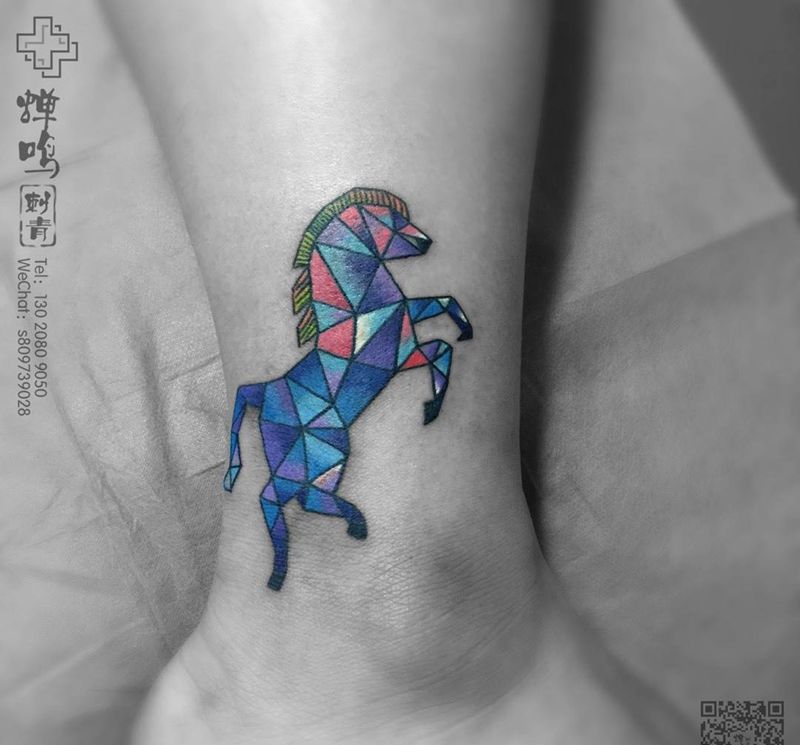 当前位置: 首页 >河北省保定市纹身店-蝉鸣刺青工作室纹身图案>马纹身图片_成品腿部欧美清新动物纹身图案