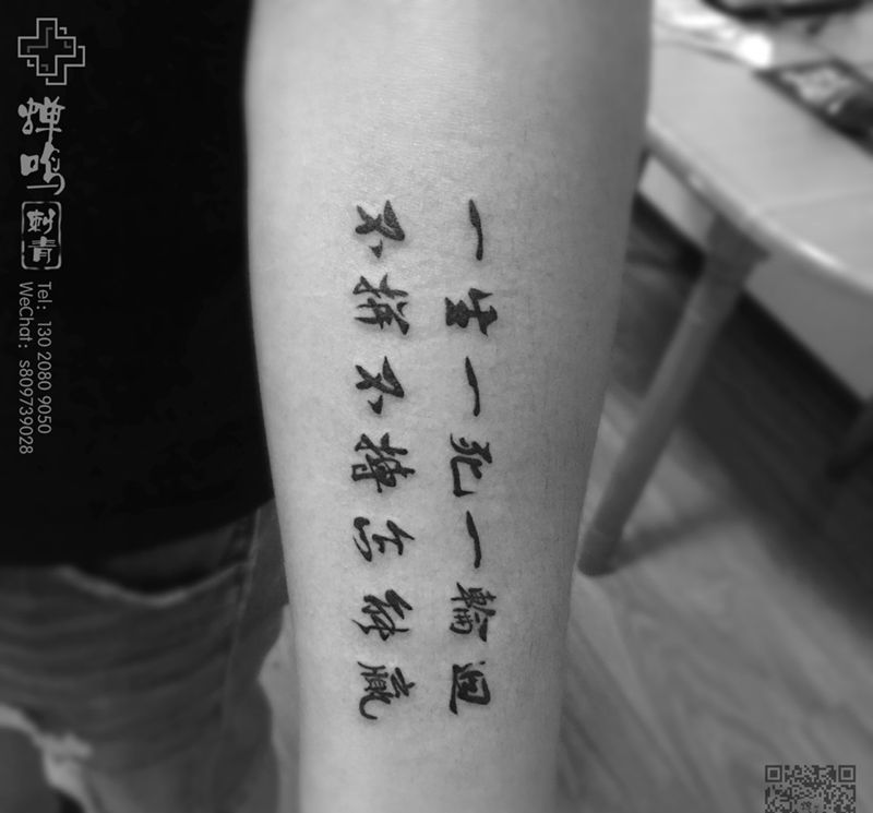 当前位置: 首页 >河北省保定市纹身店-蝉鸣刺青工作室纹身图案>汉字纹身图片_成品手臂清新字符图腾纹身图案
