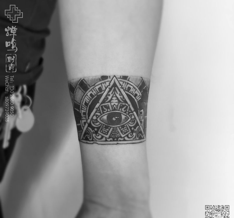 全知之眼+骷髅纹身图片_成品手臂欧美清新写实静物纹身图案
