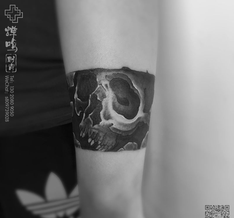 全知之眼+骷髅纹身图片_成品手臂欧美清新写实静物纹身图案