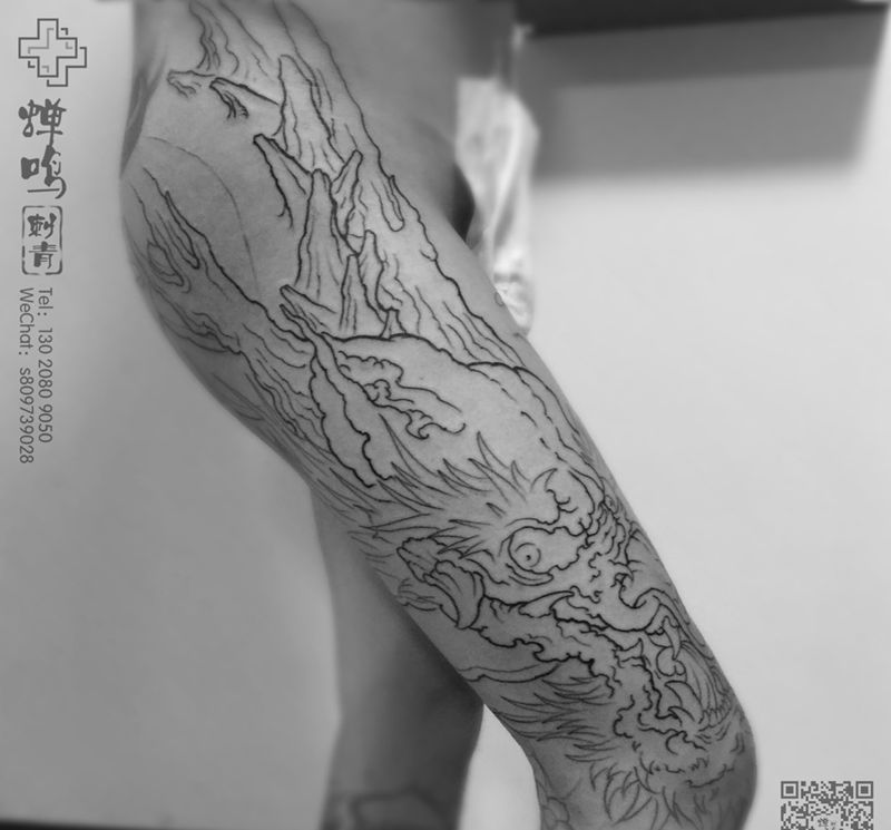 • T网红王老大花腿龙纹身图片_腿部新传统纹身图案