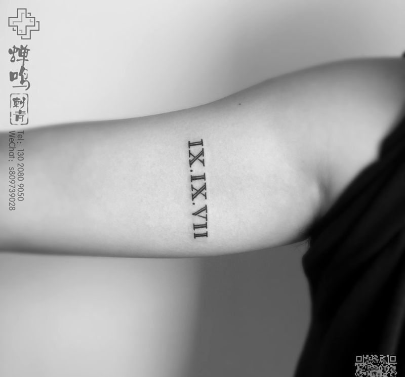 当前位置: 首页 >河北省保定市纹身店-蝉鸣刺青工作室纹身图案>罗马数字纹身图片_成品手臂清新字符图腾纹身图案