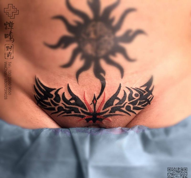 • T关于私处得爱!纹身图片_成品腹部清新字符图腾纹身图案