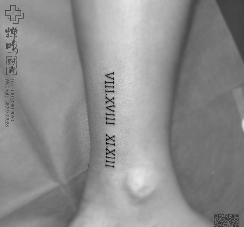 当前位置: 首页 >河北省保定市纹身店-蝉鸣刺青工作室纹身图案>罗马数字纹身图片_成品腿部清新字符图腾纹身图案