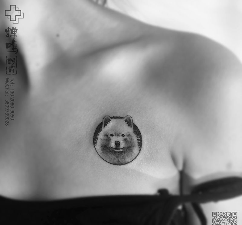 狗狗纹身图片_成品胸部清新动物原创纹身图案