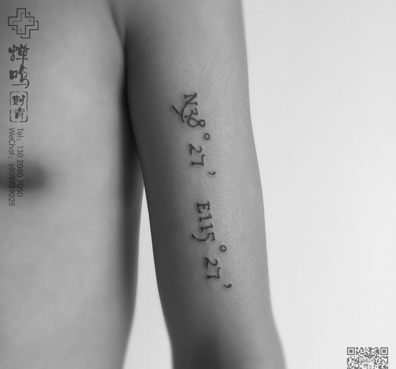 当前位置: 首页 >河北省保定市纹身店-蝉鸣刺青工作室纹身图案>坐标纹身图片_成品手臂清新字符图腾纹身图案