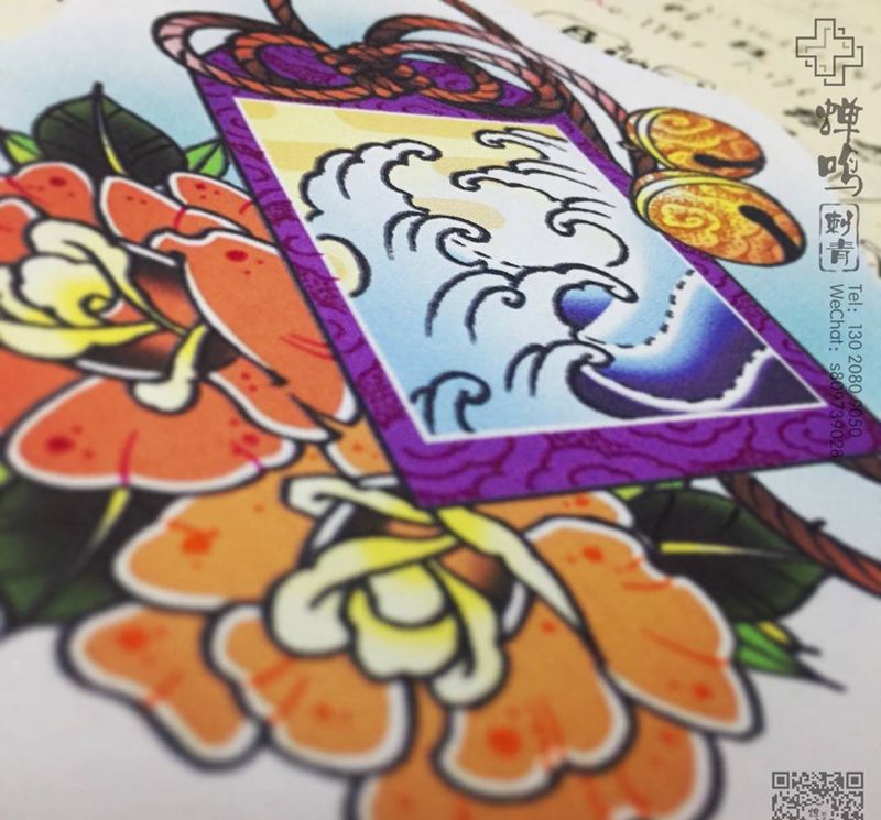 御守 玫瑰 铃铛纹身图片_手稿插画传统欧美清新静物植物原创纹身图案