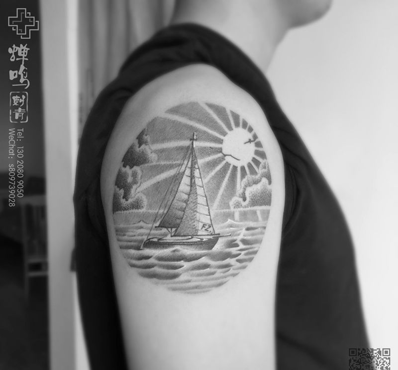 当前位置: 首页 >河北省保定市纹身店-蝉鸣刺青工作室纹身图案>帆船纹身图片_手臂New School纹身图案