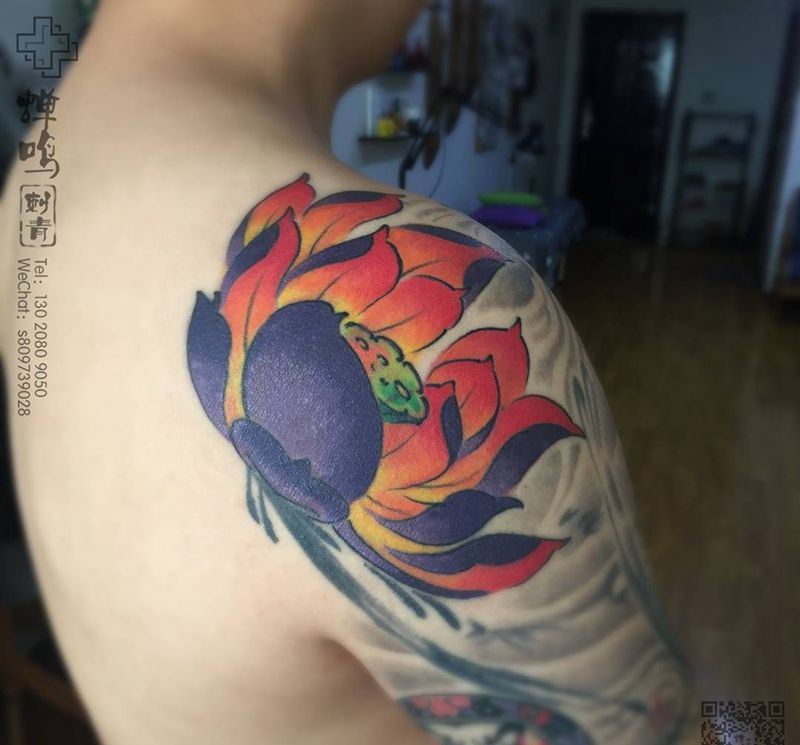 当前位置: 首页 >河北省保定市纹身店-蝉鸣刺青工作室纹身图案>遮盖纹身图片_肩部新传统纹身图案