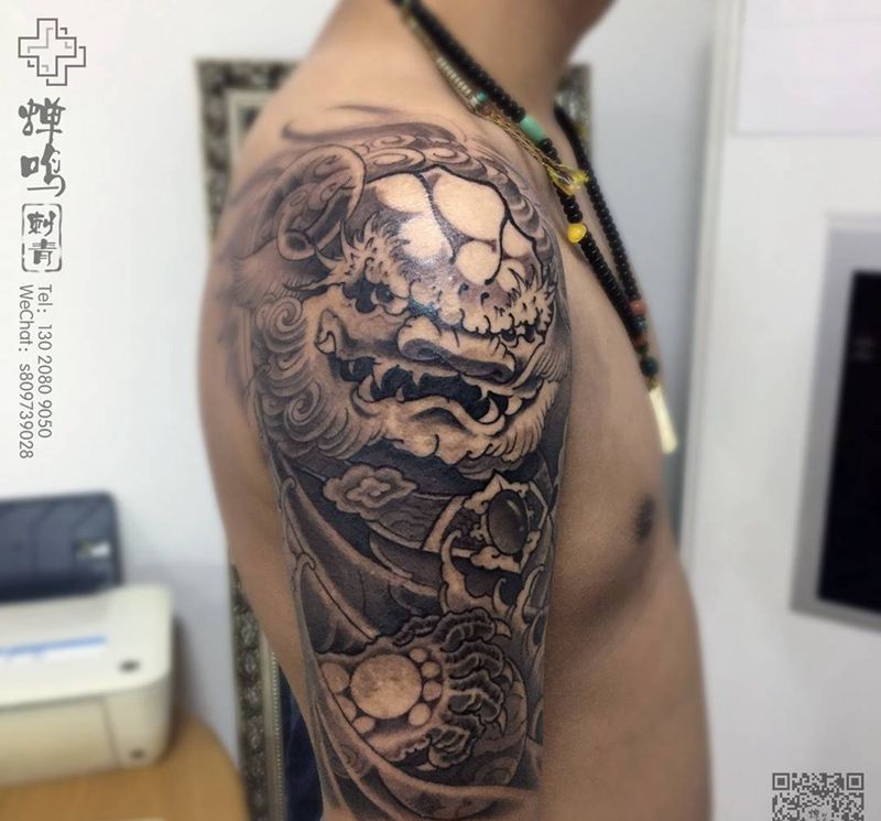 当前位置: 首页 >河北省保定市纹身店-蝉鸣刺青工作室纹身图案>唐狮纹身图片_手臂新传统纹身图案