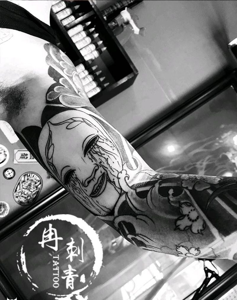 当前位置: 首页 >河北省保定市纹身店-冉刺青纹身图案>能面纹身图片_肩部手臂老传统纹身图案