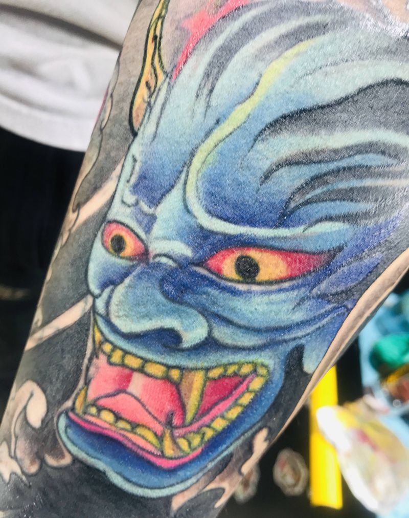 • T包小腿吹火男+阿多福纹身图片_腿部老传统新传统吹火男阿