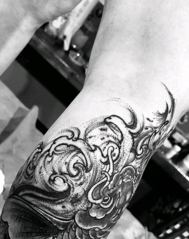 • T网红王老大花腿龙纹身图片_腿部新传统纹身图案