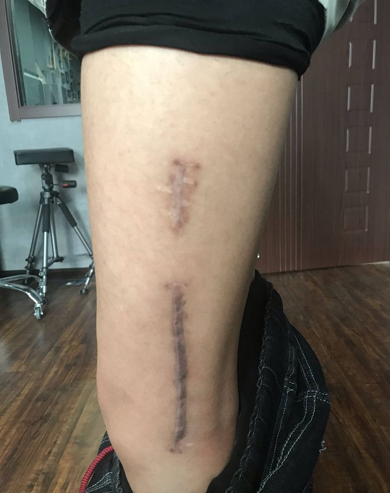 当前位置: 首页 >河北省保定市纹身店-梵音社刺青纹身图案>大腿手术疤痕遮盖纹身图片_腿部水彩纹身图案