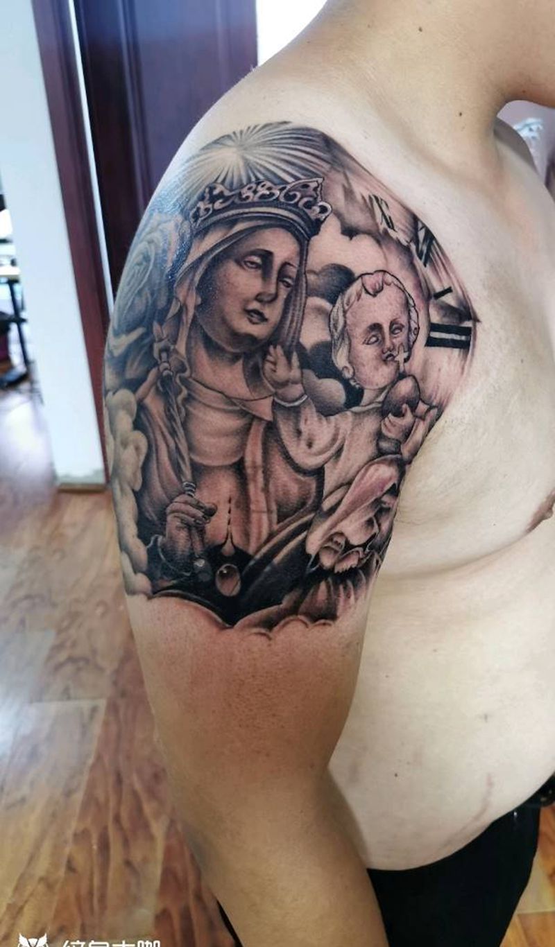 当前位置: 首页 >河北省保定市纹身店-老A 刺青纹身图案>圣母纹身图片_手臂欧美写实纹身图案