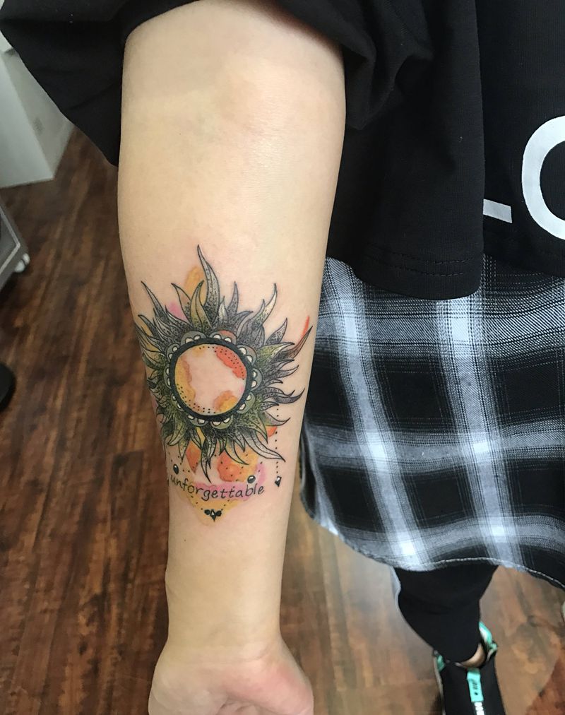 晕染小太阳纹身图片_手臂水彩纹身图案