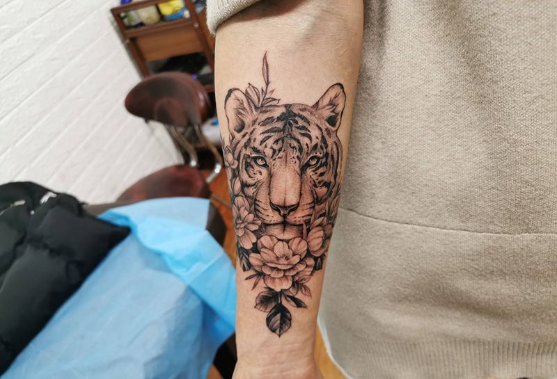 当前位置: 首页 >河北省保定市纹身店-老A 刺青纹身图案>虎纹身图片_新传统点刺虎 素花纹身图案