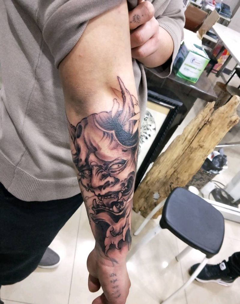 小臂般若纹身图片_手臂传统鬼神成品纹身图案
