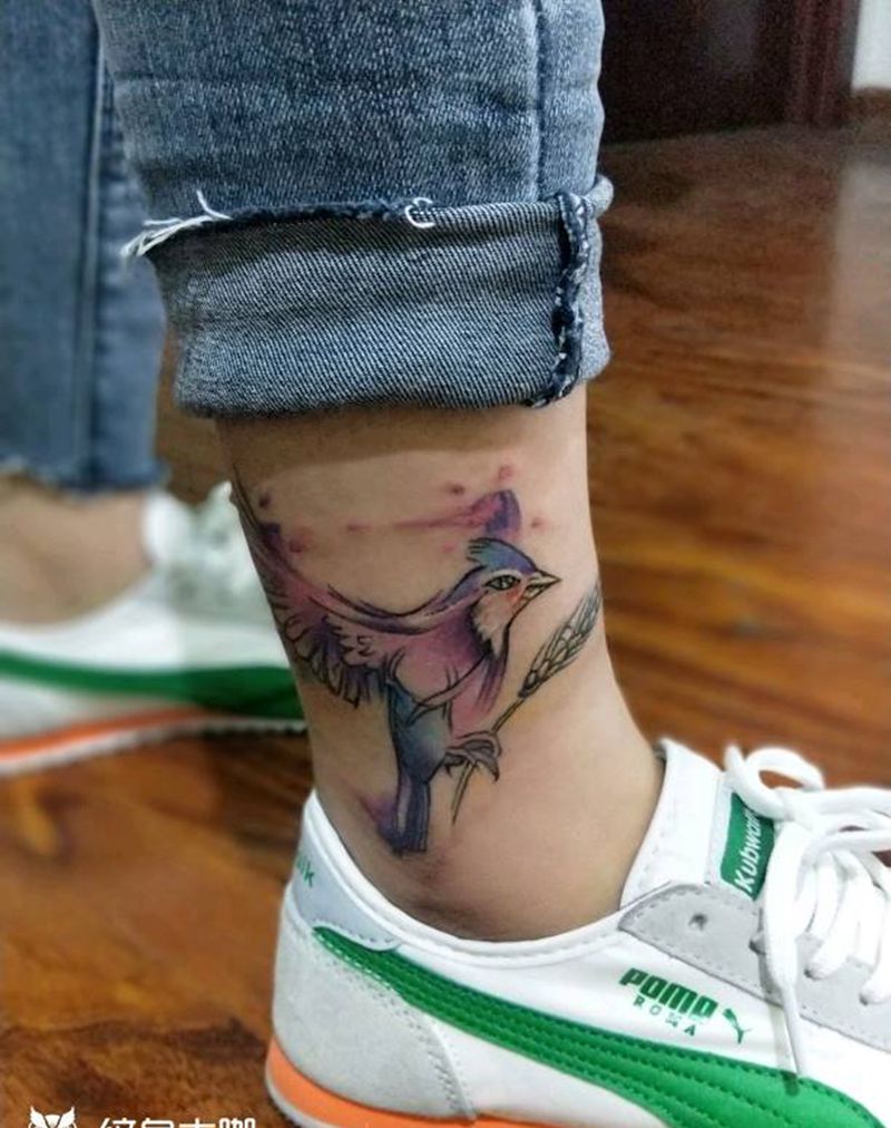 小小鸟纹身图片_腿部清新国画动物成品纹身图案
