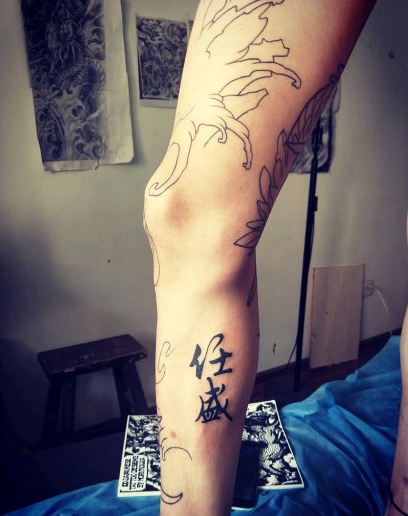 • T网红王老大花腿龙纹身图片_腿部新传统纹身图案