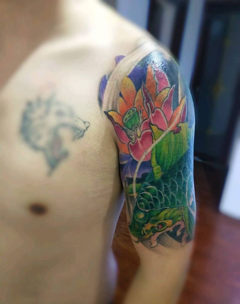 一组15张莲花纹身手