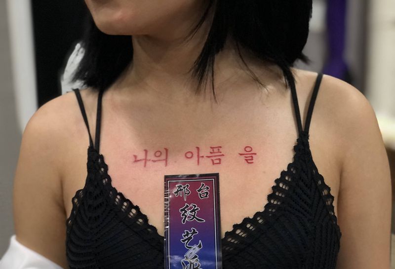 当前位置: 首页 >河北省邢台市纹身店-纹艺派纹身图案>带走我的痛苦纹身图片_胸部花体字几何纹身图案