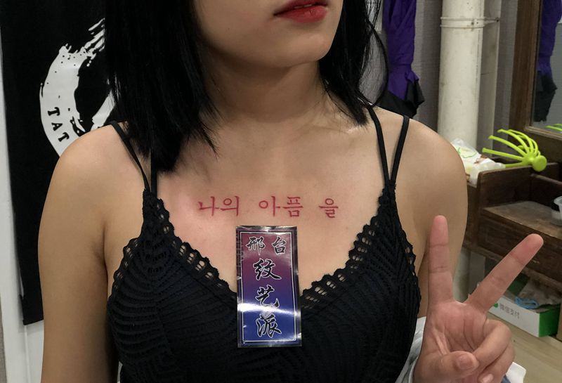 当前位置: 首页 >河北省邢台市纹身店-纹艺派纹身图案>带走我的痛苦纹身图片_胸部花体字几何纹身图案
