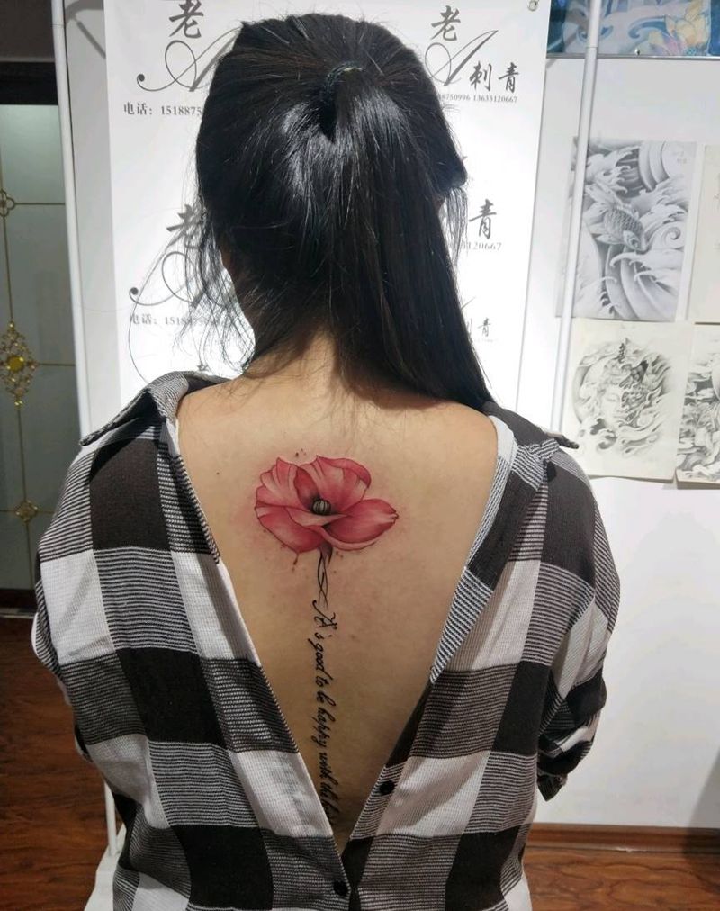 水墨花纹身图片_背部习俗清新国画植物成品纹身图案