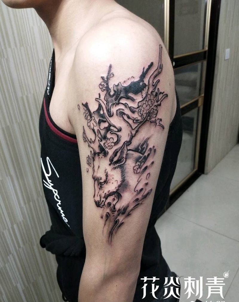 当前位置: 首页 >河北省保定市纹身店-花炎刺青纹身图案>男鹿一枚纹身图片_肩部欧美写实纹身图案