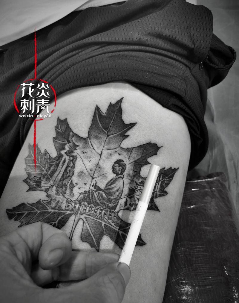 当前位置: 首页 >河北省保定市纹身店-花炎刺青纹身图案>一叶菩提纹身图片_腿部新传统佛纹身图案