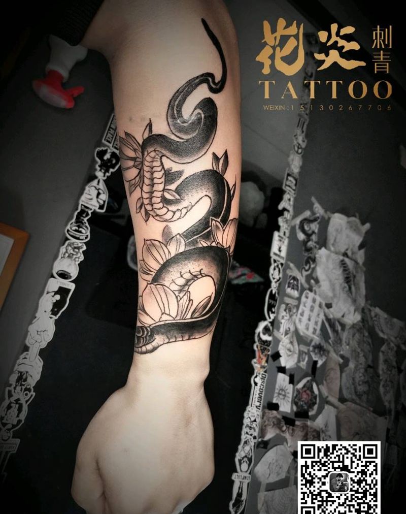 当前位置: 首页 >河北省保定市纹身店-花炎刺青纹身图案>蛇纹身图片_手臂图腾点刺蛇纹身图案