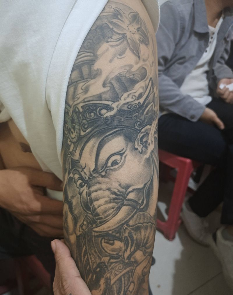 当前位置: 首页 >河北省保定市纹身店-花炎刺青纹身图案>象神纹身图片_肩部新传统象神纹身图案