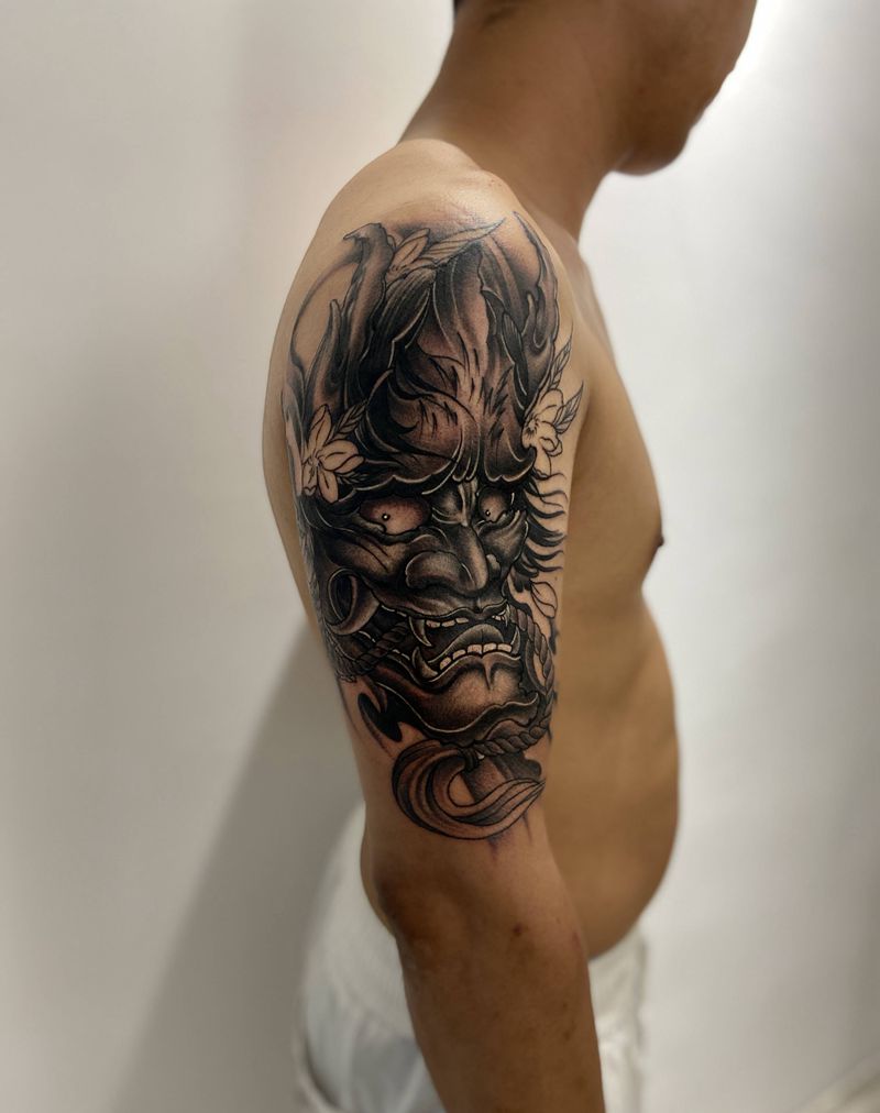 般若【遮盖】纹身图片_肩部新传统纹身图案