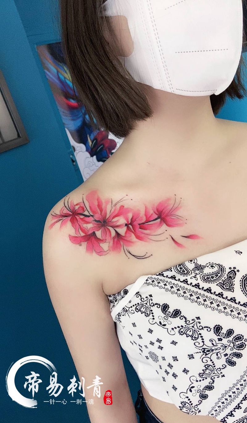 当前位置: 首页 >河北省邢台市纹身店-帝易刺青纹身图案>彼岸花纹身图片_肩部水彩纹身图案
